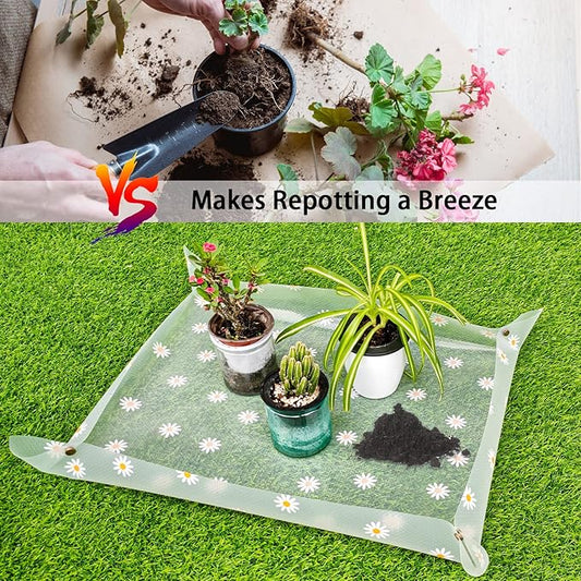 Repotting Mat for Indoor Plants Waterproof Clear Potting Mat Foldable Plant Potting Repotting Tray Portable Gardening Tray for Indoor Potting Soil, House Plants Orchid,Succulents 31.5 x 23.6