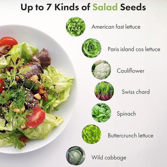 Salad Greens Seed Pod Kit for AeroGarden, iDoo with Red and Green Leaf, Romaine and American Fast, Buttercrunch, Parris Island Lettuce, Spinach - Compatible with All Hydroponics (7-Pod)