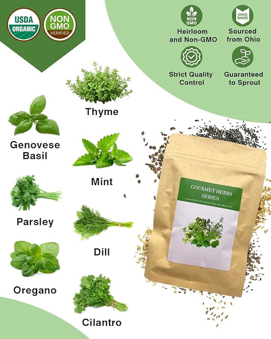 Gourmet Herb Seed Pod Kit for AeroGarden, idoo, Ahopegarden, MUFGA with Basil, Parsley, Thyme, Mint, Cilantro, Dill, Oregano - Compatible with All Hydroponics (7-Pod)