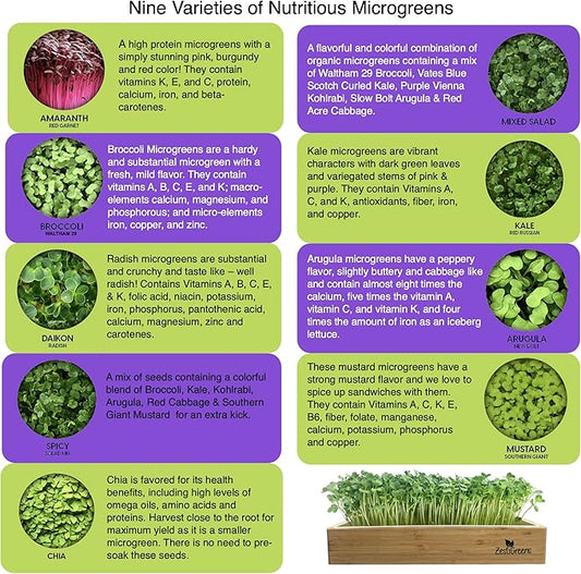 Microgreens Kit Refills with 9 Plant Mats & 9 Types of Seeds for ZestIGreens Microgreens Starter Kit