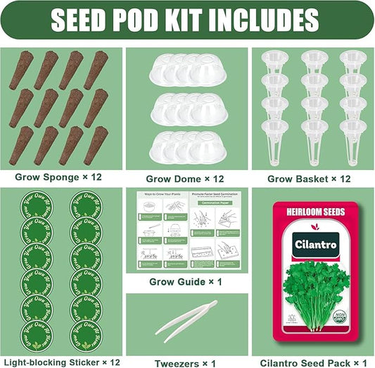 Cilantro Seed Pods for All Hydroponics Growing Systems, 12 Pods Herb Kit with 200+ Seeds of Cilantro, Grow Your Own Herb Garden at Home