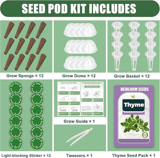 Thyme Seed Pods for All Hydroponics Growing Systems, 12 Pods Herb Kit with 1800+ Seeds of Thyme, Grow Your Own Herb Garden at Home