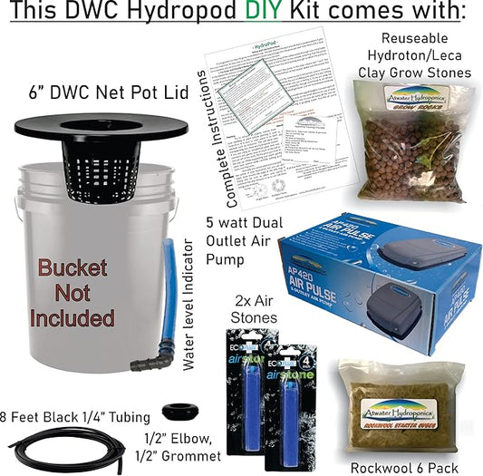 The Atwater HydroPod - DIY Add Your Own Bucket KIT - DWC Deep Water Culture Hydroponic Garden System - Bubble Bucket - No Nutrients, No pH Version - Bucket Not Included Save $$