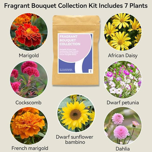 inbloom Fragrant Bouquet Seed Pod Kit for AeroGarden, iDoo, Ahopegarden, GARDENCUBE, 7 Pods (350+ Flower Seeds with Sunflower, Petunia, Mexican Marigold, Cockscomb, French Marigold, Dahlia)