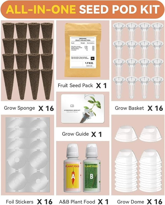 Fruits Seed Pod Kit for AeroGarden, Ahopegarden, iDoo, GARDENCUBE, MUFGA with Strawberry, Cucumber, Red/Golden Cherry Tomato, Compatible with All Indoor Hydroponics Growing System, 16-Pod