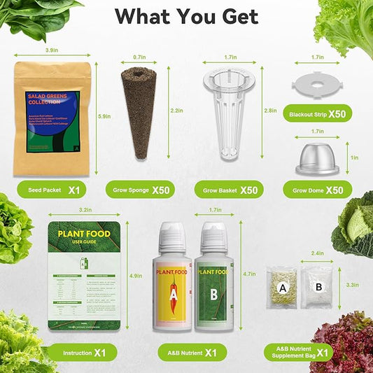 Seed Pods Kit for Hydroponics System, Includes 50 Grow Sponges, 50 Labels, 10 Grow Domes, 10 Grow Baskets and 1 Tweezers