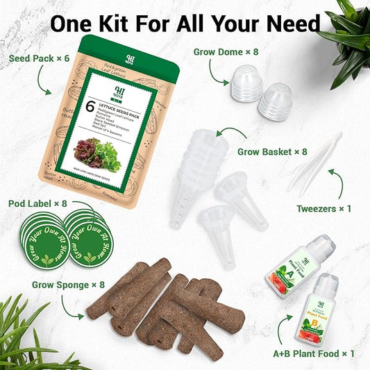 Lettuce Seed Pods for All Hydroponics Growing System, 8 Pods with 600+ Seeds of Romaine/Butter Head/Red&Green Leaf/Black Seeded Simpson/Red Sail and Marvel of 4 Seasons
