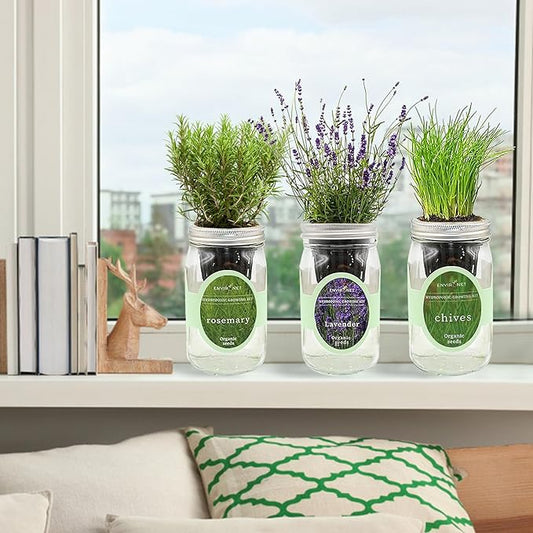 Hydroponic Herb Growing Kit Set, Self-Watering Mason Jar Herb Garden Starter Kit Indoor, Windowsill Herbs Garden, Grow Your Own Herbs from Organic Seeds (Rosemary, Lavender, Oregano)