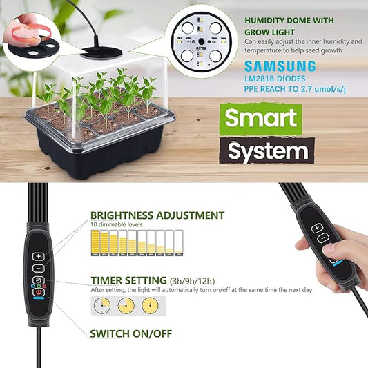 Seedling Starter Trays 5 Packs Seed Starter Tray with Grow Light, Smart Controller Seed Starting Trays Kit with Humidity Dome (60 Cells) Indoor Gardening Plant Germination Trays Black