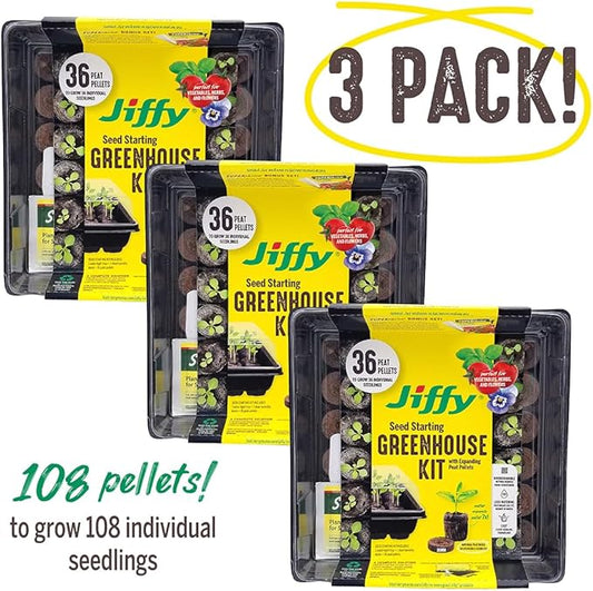 Jiffy Seed Starting Tray Kit, 36 Cell 36mm Peat Pellets with Bonus - 3 Pack, 108 Pellets Total