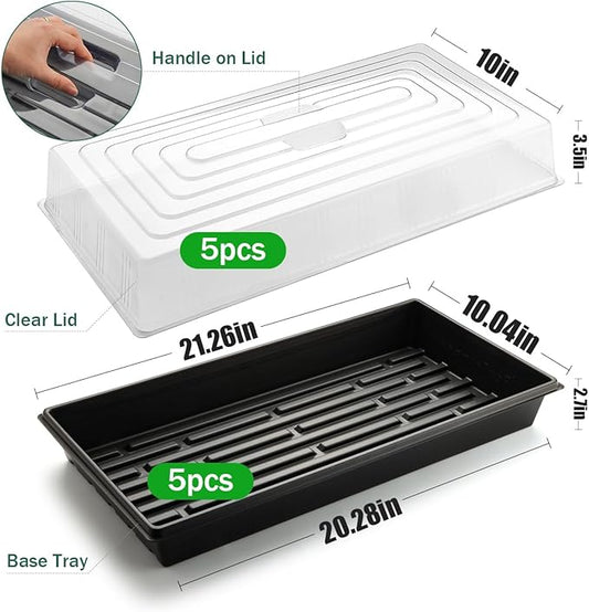 5-Pack 1020 Seed Trays with Humidity Domes - Reusable Heavy Duty Plant Propagation Trays, 3.6" 1020 Clear Greenhouse Covers & Handle for Seedlings, Cloning, Microgreens (No Holes Design)
