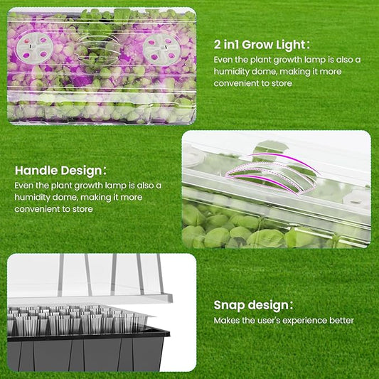 Bonviee 5 Packs Seed Starter Tray with Plant Light, Elevated Seedling Starter Trays Kits with Adjustable Humidity Domes and Clear Cell Tray, 12 Full Spectrum led lamp Beads for Plants Indoor-Green