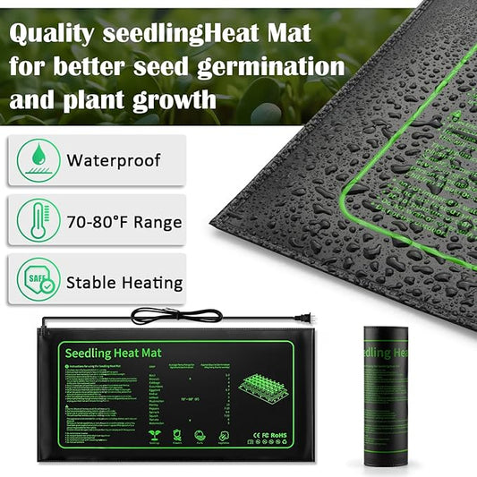 4-Pack 1020 Seed Starter Trays with 7.3'' Humidity Domes & 2-Pack Heat Mats – Heavy-Duty Seedling Trays with Adjustable Domes & Waterproof Heating Mats for Optimal Germination & Cloning Propagation
