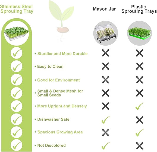 Stainless Steel Sprouts Growing Kit 2-Tier 12.4 inch Trays, Microgreens Growing Kit, Seed Sprouting Tray with Encrypted Mesh Sprouts for Beans Alfalfa Broccoli Wheat Grass