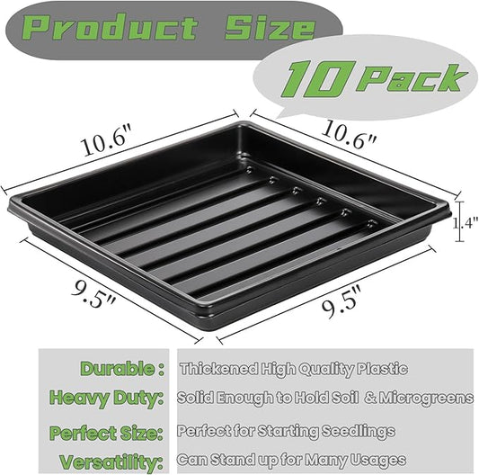 10 Pack Plastic Growing Trays, 10.6"x10.6" Garden Plant Growing Flats, Propagation Seedling Tray Without Drain Holes, Microgreens Seed Starter Tray for Greenhouse Wheatgrass Germination