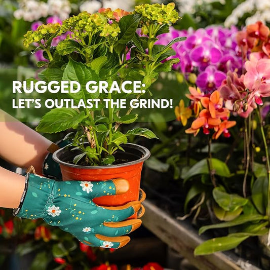 HANDLANDY Gardening Gloves for Women, Breathable Ladies Leather Garden Yard Gloves Best Gift for Gardeners