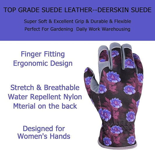 SKYDEER Premium Genuine Deerskin Suede Women's Gardening Gloves, Ultra-Soft Padded, Comfort Fit for Work (SD6611LL/M)