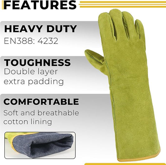 HANDLANDY Animal Handling Gloves, Bite Proof Cat Gloves, Ideal for Rose Pruning, Gardening, Falconry, Pet Grooming (Ginger yellow, 16 Inches)
