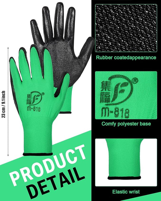 72 Pairs Gardening Work Gloves Bulk for Men Women, Rubber Coated Garden Multipack Safety Construction Glove