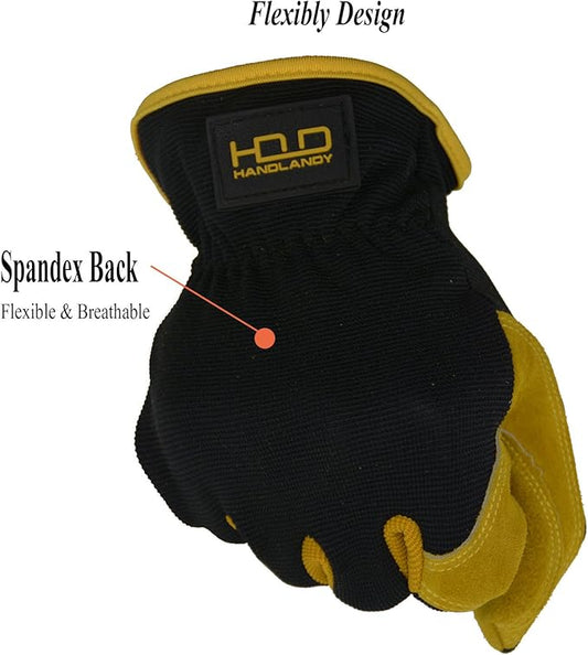 HANDLANDY Men Leather Gardening Gloves, Utility Work Gloves for Mechanics, Construction, Driver