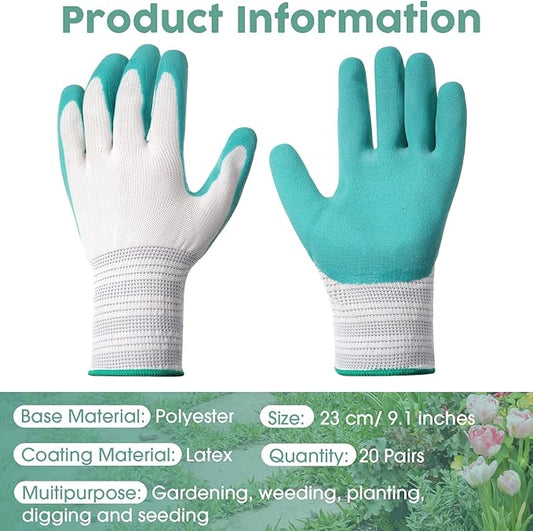 20 Pairs Garden Gloves for Women Ladies' Gardening Gloves Bulk Breathable Rubber Coated Protective Work Tools Universal One Size
