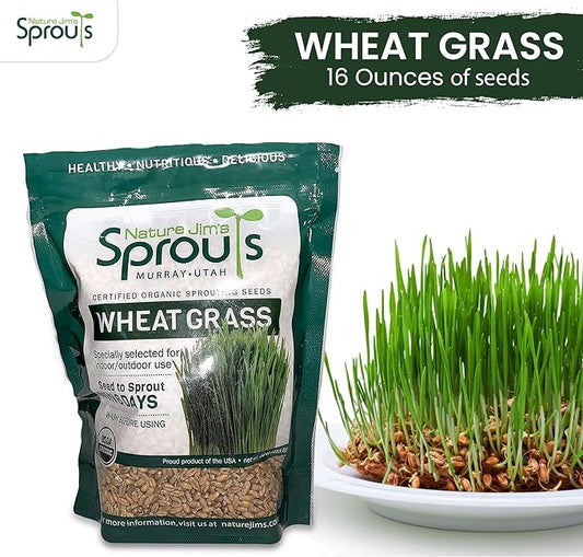 Nature Jims Sprouts Wheatgrass Seeds - 100% Organic Wheat Grass Seed for Sprouting - Cat Grass Planter Seeds, Rich in Vitamins, Fiber and Minerals - Non-GMO, Healthy Wheatgrass Sprout Growing Seed