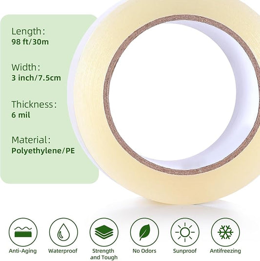 Ohuhu Greenhouse Repair Tape Plastic: 3" x 98' Green House Sheeting Tape 6.3 mil Reinforced Clear Plastic Film Tape for Greenhouse Polyethylene PE Cover Repair