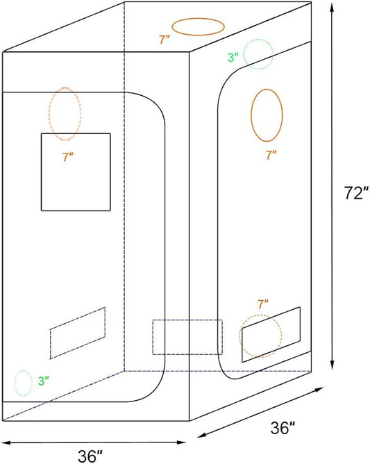 Outvita 3x3 Grow Tent, 36"x36"x72" High Reflective Mylar Hydroponic Plant Growing Room with Removable Floor Tray & Observation Window for Indoor Plant Flower Herb