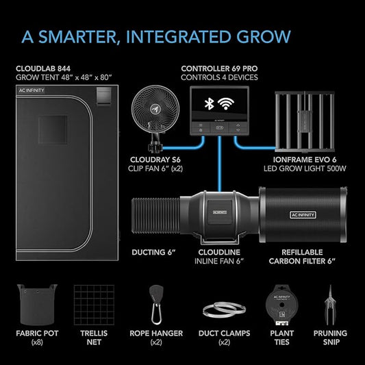 AC Infinity x Athena® Cultivator Kit, Complete 2-Plant Grow Tent System with Blended Line Fertilizer Starter Kit, Dynamic Learning AI Control with WiFi-Integrated Quiet Fans, Full Spectrum EVO Lights