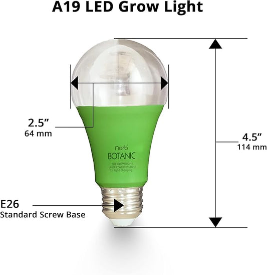 NorbBOTANIC A19 LED Grow Light – Full-Spectrum 9W Plant Light, Mimics Sunlight for Seed Germination, Optimal Indoor Plant Growth, Herbs, Tropical, Houseplants, High-Intensity, E26 Base
