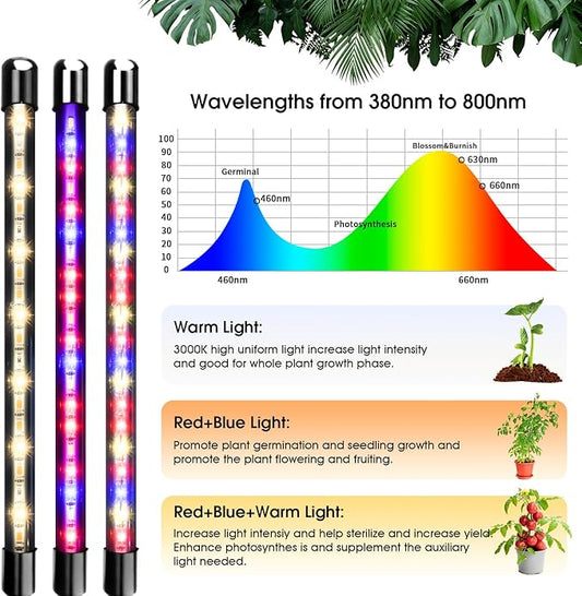 Plant Grow Light,yadoker LED Growing Light Full Spectrum for Indoor Plants, Paired with a Soil Tester,Height Adjustable, Automatic Timer, 5V Low Safe Voltage,Idea for Large Plant Light