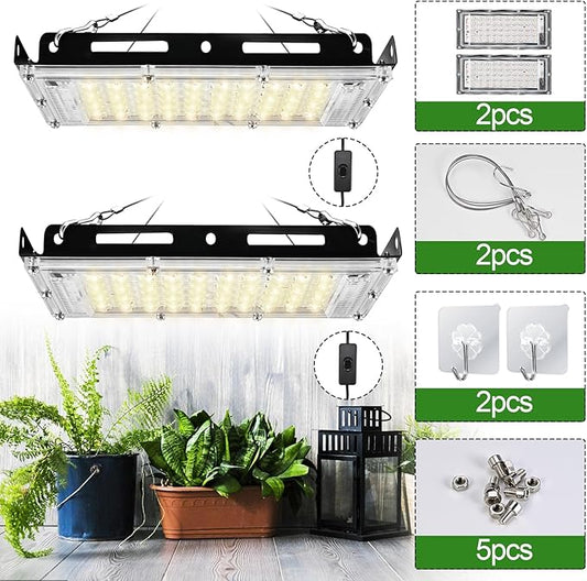 2pcs Hanging Grow Lights for Indoor Plants (20w X2) with Height Adjustable, 4000 Lumen LED Bonsai Houseplant Growing Lamp with On/Off Switch, Grow Light UV-IR Full Spectrum