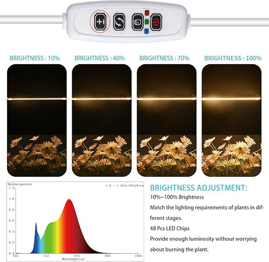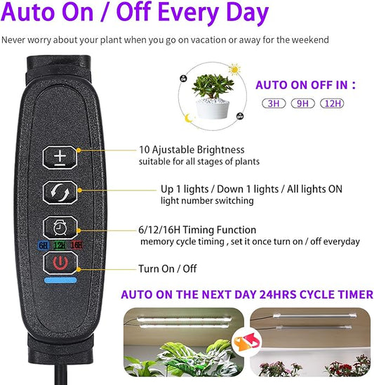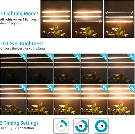 3 Head LED Grow Light Strips for Indoor Plants Full Spectrum 3500K, 144 LEDs Plant Light Bar with 3/9/12H Timer, 10 Dimmable Levels for Seedling Succulent, 13 Inches