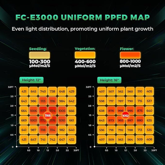2025 New Version MARS HYDRO FC-E3000 300Watt LED Grow Light 3X3ft Full Spectrum Grow Light Bar, Smart Dimmable & Integrated Grow Lampe for Veg Bloom Flower, Achieve 2.8 umol/J