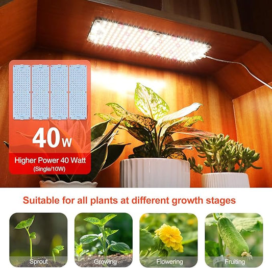 FECiDA 4Pack Grow Lights for Seed Starting, 2025 40W Flat Grow Light Panels for Shelves, Under Cabinet/Counter, Greenhouse, Indoor Plants, 4,8,12 Hr Timer, Free Linking