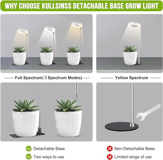 Grow Lights for Indoor Plants, 48 LEDs Full Spectrum Halo Plant Light for Indoor Plants, Height Adjustable Growing Lamp with Detachable Base, 3/9/12Hrs Timer, 10 Brightness, 3-Pack
