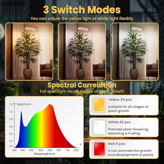 bseah Plant Grow Light for Indoor Plants, Full Spectrum Grow Lamp with Pedestal Stand, Automatic Timer for 3H/9H/12H, Height Adjustable 51-67in White