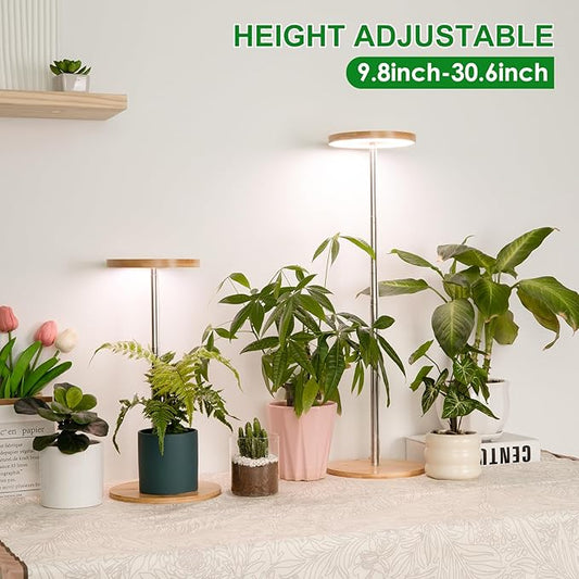 LORDEM Bamboo Grow Light, LED Plant Light for Indoor Plants Growing, Full Spectrum Bamboo Desk Growth Lamp with Automatic Timer for 4H/8H/12H, 4 Dimmable Levels, Height Adjustable