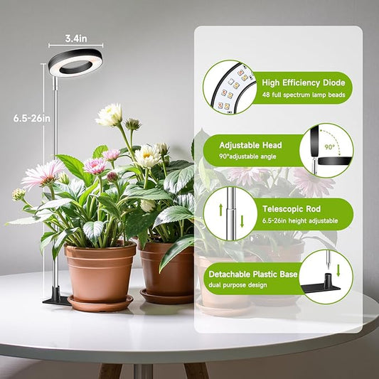 Kullinss Grow Light, 48 LEDs Full Spectrum Plant Lights for Indoor Growing, Small Plant Grow Light with 3/9/12H Timer, 3 Color Modes, 10 Brightness, Height Adjustable Grow Lamp for Small Plants