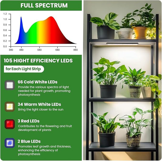 Wolezek Grow Light Strips for Indoor Plants, 420 LEDs Full Spectrum Plant Light for Indoor Growing with Upgared 4/8/12/16H Auto Timer, Grow Lamp Bar for Seedling Succulent, 13.8 Inches, 4 Pack