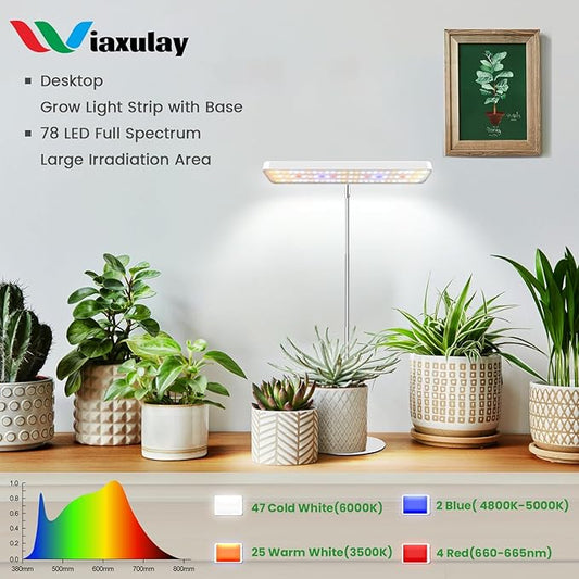 Wiaxulay Grow Lights for Indoor Plants, 78 LEDs Full Spectrum Plant Grow Light, Desk Grow Light with Auto Timer 6/12/16 Hrs, 3 Lighting Modes, 5 Dimmable Levels, Height Adjustable 7.8"-26", 3 Pack