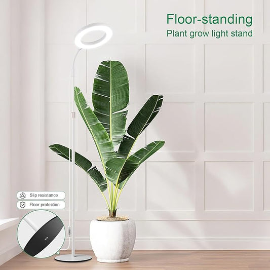 LBW Full Spectrum Grow Light with Stand – Auto Timer (4/8/12H), 4 Dimmable Levels, Adjustable Height (48.8-64.6"), Ideal for Large Indoor Plants, White