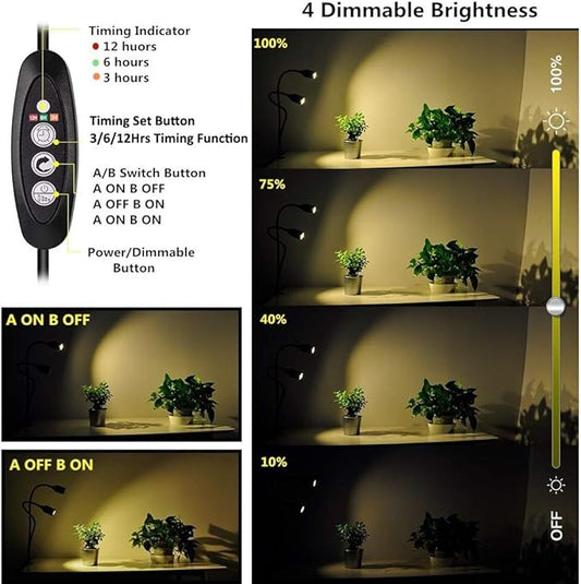 Relassy LED Grow Light for Indoor Plants 75W Sunlike Full Spectrum Indoor Grow Light Plants - 3/6/12H Auto On/Off Timer Grow Lamp - 4 Dimmable Indoor Plants Light - 22.5 Inch Longer Gooseneck