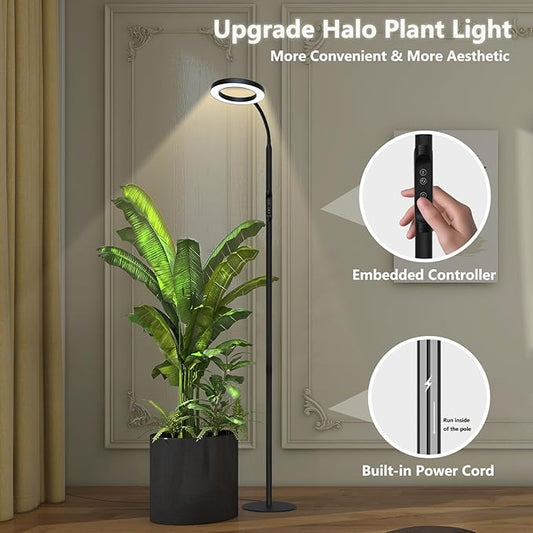Grow Light for Indoor Plants, Full Spectrum Led Plant Growing Lights with Stand, Tall Halo Floor Growth Lamp with Timer, Height Adjustable, Dimmable Brightness for Large Plants