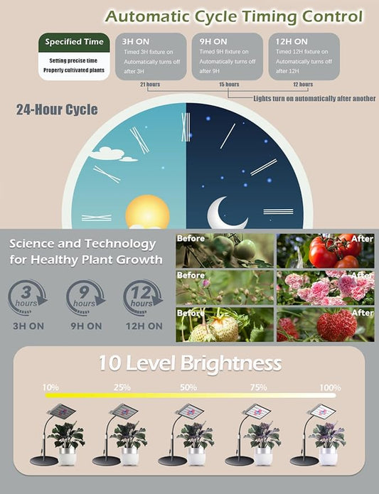 ANCIENTPWR Industrial-Grade Plant Grow Light, Full Spectrum for Indoor Plants with Auto Timer (3/9/12H), 10-Level Dimming, 75.5" Adjustable Height, Flexible Gooseneck & 4.1lb Heavy Base