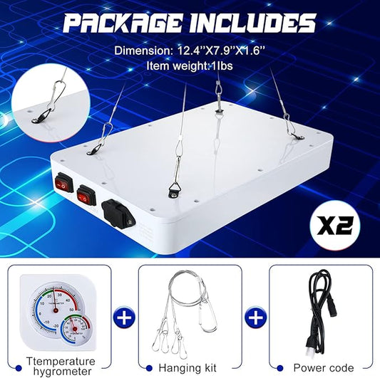 Supervitae 2 Pack 1000 watt LED Grow Lights for Indoor Plants Full Spectrum Growing Tent Lamps with Veg & Bloom & Veg-Bloom 3 Modes, Daisy Chain and Temperature Hygrometer for Vegetable and Flower