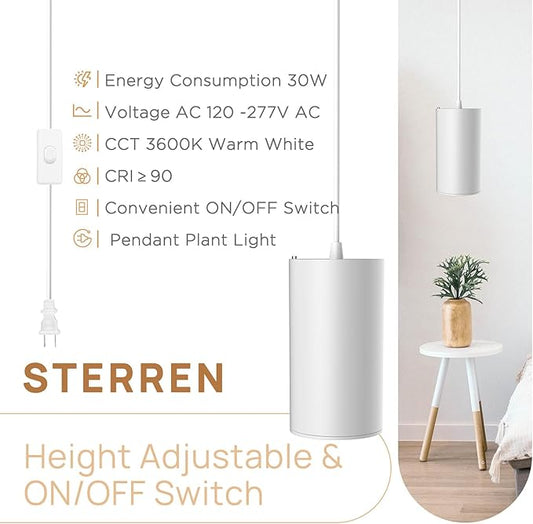 STERREN LED Grow Light, White Plug in Hanging Lights for Indoor Plants, Full Spectrum Grow Lights with On/Off Switch, Decorative Pendant Lights with 21 Ft Height Adjustable Power Cord