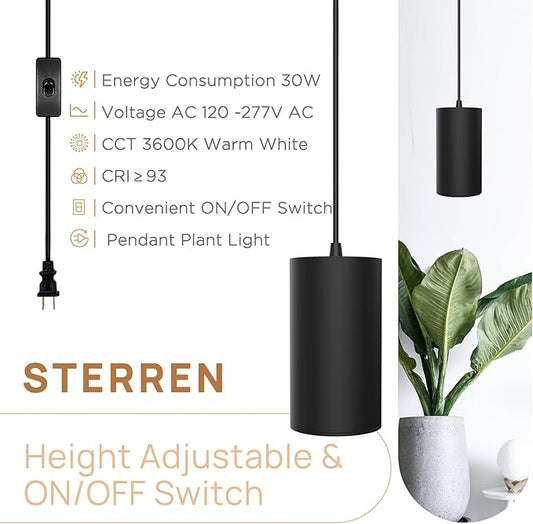 STERREN Plant Grow Light,Led Pendant Light for Indoor Plants,Full Spectrum Hanging Grow Lights with 21 FT Height Adjustable Power Cord, ON/Off Switch Black Plant Lights for Indoor Plant Growing