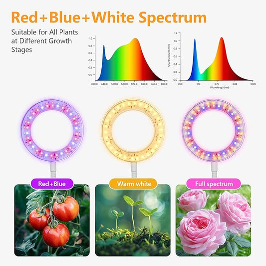 GLOWRIUM Grow Lights for Indoor Plants, Full Spectrum Plant Lights with Clip, Height Adjustable&3 Spectrum Mode, 3/9/12h Automatic Timer, 10 Dimmable Brightness, Mini Halo Grow Lights for Small Plant