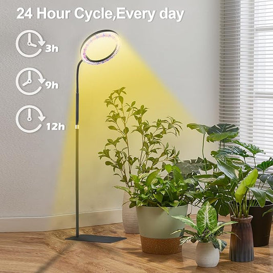 Grow Light for Indoor Plant, 20W Full Spectrum Large Round Heads Growing Lights,10 Dimmable Brightness,Height Adjustable,Flexible Gooseneck,Auto Timer,LED Floor Lamp for Tall Small Plants Growth